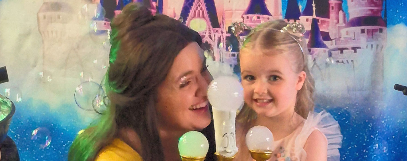 Meet our enchanting princesses who bring a world of soap bubble magic to life! Whether it's Belle from Beauty and the Beast, Elsa from Frozen or the Little Mermaid, our incredible bubble show is the perfect addition to any princess party. Featuring music, dance, stunning decorations, and millions of mesmerizing soap bubbles, this magical experience will add a delightful twist to your child's party. Book our princess party bubble show today and create unforgettable memories.